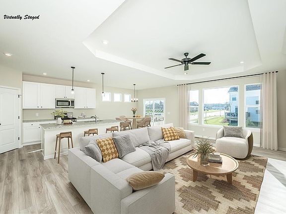 New construction in The Streets of Caledonia, The DaVinci offers a welcoming covered front porch, an open floor plan that features a great room with a fireplace. Open kitchen with granite counters, 42-inch cabinets, corner pantry, island with seating space, all open to the family room. Primary Suite with private bath and walk-in closet. Two Additional bedrooms and hall bath. Full, unfinished basement with full basth rough-in. Attached two car garage.
