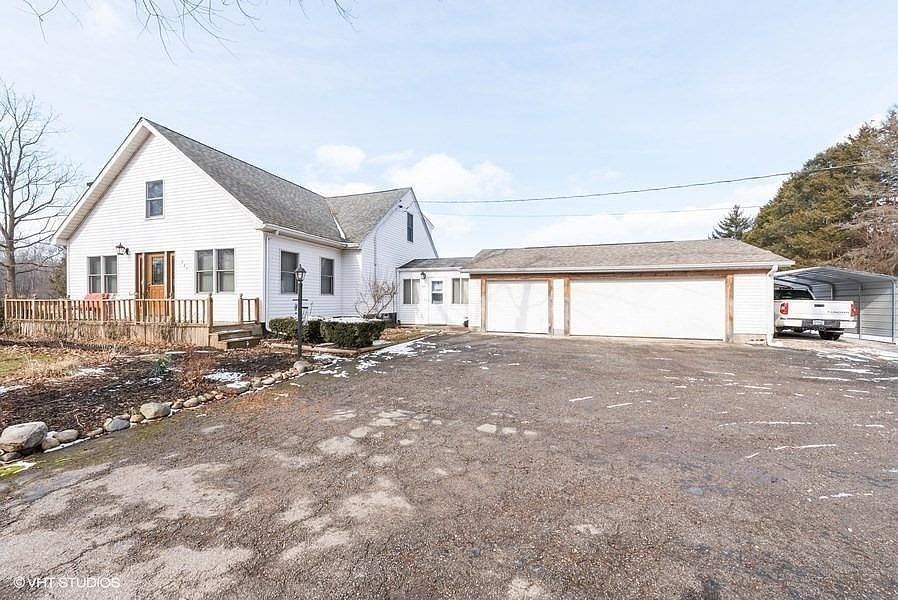 The best of both worlds. Country living just minutes from downtown Chesterton, the train station, the interstate, and the beach. The entire main floor of this home was updated a few years ago. They turned an old farm house layout into a modern open concept floor plan with unique ceramic tiles throughout the main level. A new master en suite was added along with a half bath, new kitchen, and a third bay in the attached heated garage. Instant on hot water, newer furnace, all new kitchen appliances, a car port, and more. There is a large fenced in backyard and a new Pole Barn with a large loft. This home sits on 5 beautiful acres.