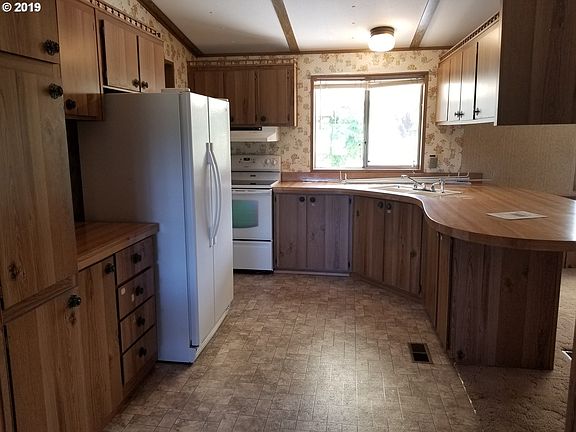 3bd 2bth home in good condition offers open floor plan,spacious kitchen w/appliances, indoor laundry,sun room,newer furnace and heat pump.Versatile outbuildings include Lg double sided garage/shop able to accommodate your RV and all your tools with lofts for extra storage. Property sits on .75ac nicely landscaped with mature foliage, fruit trees and circular driveway.