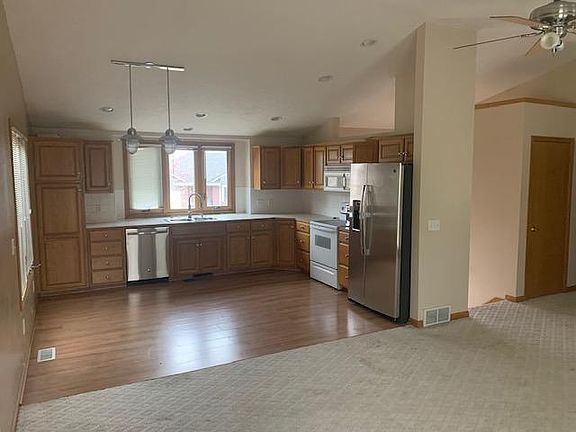 Three bedroom split entry with open floor plan, fireplace, deck in private back yard, finished basement and 24 x 28 attached 2 car garage. Master bedroom includes 3/4 bath and walk in closet.
