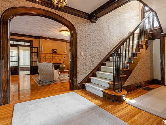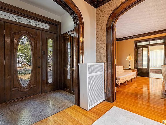 Extravagant Colonial style brick home that must be seen in person to be able to fully admire every feature it has to offer. This home is loaded with original refinished hardwood flooring, walnut woodwork and french doors. Kitchen has been updated and features two islands and plenty of cabinet space. Formal dining room with luxury chandelier. The Grand stair case is the first thing you see as you walk into the main entrance. Large family room complete with a gas fire place. Relax on the enclosed porch infront of another fireplace or soaking in the hot tub. Up stairs are 4 bedrooms with a half bath and full bath complete with original tile and fixtures. Head up more stairs to the loft area and half bath that could be used as another bedroom. In the basement you will find a built in wet bar, fireplace, Full bath and a shower room with more space for entertainment. Sounds like the ultimate Man Cave!. 3 car attached garage and a workshop out building with electric, water and gas. Come see!