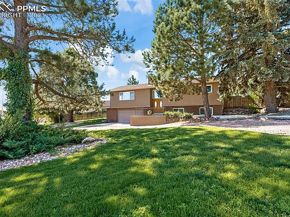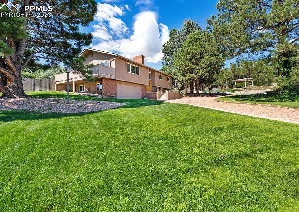 Do not let this opportunity pass!!!! Award winning District 20 school district and minutes away from the I-25 making your commute a breeze! Come home to your dream home in this desirable Rockrimmon neighborhood complete with mountain views, mature trees and situated on a cul de sac. A new stucco exterior, this bi-level home offers a circular driveway, perfect for families with multiple vehicles and still have plenty of guest parking! Located close to shopping, entertainment, plus hiking and biking at the Pikes Peak Greenway trail just down the road! Enjoy the new composite deck complete with fruit trees and large fenced yard, perfect for family gatherings. Completely repainted and carpeted throughout, this bi-level home’s main level radiates natural light with two patio doors, a vaulted beam ceiling and an expansive family living area not found in homes this size. Complete the charm with a full wall brick wood burning fireplace, opening to a formal dining area. Next, a sunny eat in kitchen with solid wood cabinets, easy to clean solid-surface countertops and a double oven. This home not only features four bedrooms and three baths, but the large lower-level bonus room has a spacious layout suitable for any family needs. Opportunity awaits, don’t wait. Come and see your future home now in this Classic!