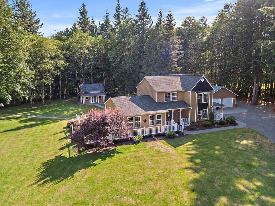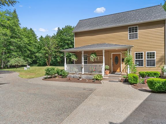 Park like setting located on a private dead-end road. Pull into this private driveway located on 7+ acres with well maintained land and home. Enjoy creek access from the backyard, horse shoe pits, fire pit, chicken coop, court yard, wrap around deck, garden shed with office space, detached two car garage with workout room. The 7 acres includes wooden space for privacy and small pasture in the back of the property. Inside you will enjoy natural light,3 bedrooms,2.75 baths and updates throughout.