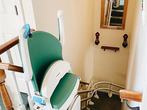 Walk in level bedroom and full bathroom. Totally handicapped accessible condo!! Includes chairlift and walk-in tub. Beautiful wooded scenery from the patio and deck view. Seller is offering a $1500 flooring allowance. Buyer to verify all info.