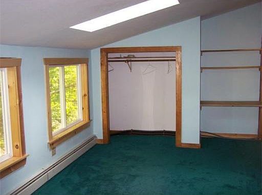 One mile from Rt 2 but tucked in the woods with privacy. Wide pine ceiling. Lot is half open, half wooded. Comes with a barn. Nearby Wendell State Forest, white water for kyacks. South facing roof has solar potential. Passed title V and Brand New wood stove. Lofted built in kids bed. Newer appliances includes new glass top stove and dishwasher.