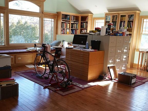 Unique home - amazing flexible floor plan! Enter into the large foyer & then use your imagination! Wonderful for entertaining, the large open kitchen boasts a huge center island, breakfast bar, gas cooktop, electric oven, stainless appliances & granite countertops. The family room has two walls of floor-to-ceiling windows, gas fireplace, built-ins, cathedral ceilings w/recessed lighting, crown molding & sliders opening to a sunny deck. Dining rm w/recessed lighting, bay window, built-ins & French doors steps down into formal living rm w/fireplace & built-ins. Huge first floor "bonus" room with sitting area can be used for an in-law, au pair, playroom or add'l bedroom. The upstairs library can be used for an "in-home" business- two walls of glass-front built-ins, gas fireplace, cathedral ceiling, recessed lighting & sliders to a private deck. Hardwood floors throughout, central air, central vac, heated basement/garage, workshop, 2nd floor laundry, sun room, irrigation system.