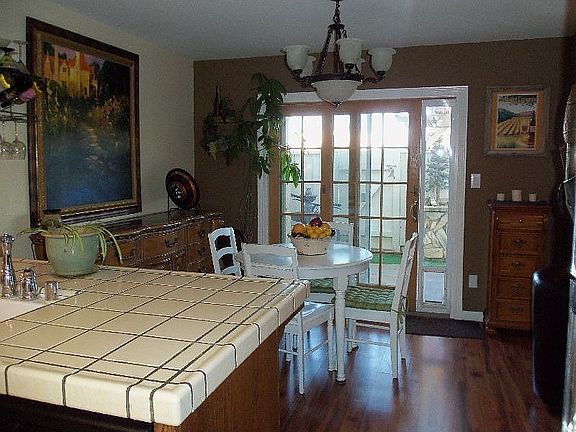 Beautifully upgrads with hardwood floors recessed lights & crown molding, open floor plan with breakfast bar & dining area adjacent to the slate patio offering a built in BBQ! 2 master suites! One is double sized with huge retreat and vaulted ceilings. 2nd has full bath & porch. Tastefully painted