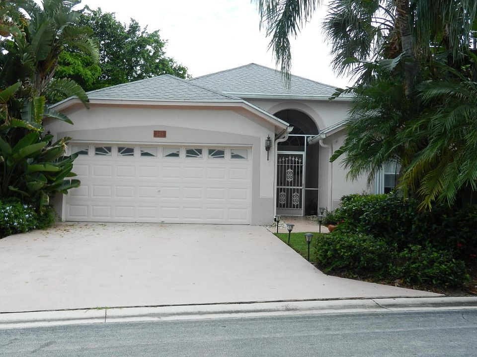 See the visual tour in the photo section. Great home with a GREAT waterfront location. Split br floor plan, enclosed patio with roll down shutter protection and accordion shutters for all openings, even panels for the garage door. Large tile flooring laid on a diagonal in the entry, living room and eat in kitchen all of which overlook the water. Excellent River Bridge gated community. Plenty to do, Exercise room w/ machines and treadmills, Pool, ping pong, basketball, tennis, Bocce pall, card games, monthly functions , Great parties and Holiday events.
