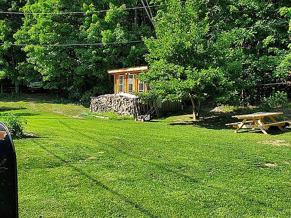 This nicely restored rustic style home has a rural feel but once inside it's fully modern and just a few minutes to downtown Brandon. The living room features a cathedral ceiling, hardwood floors, and wood stove with hearth. The loft style master bedroom features wide pine floors. There's a 2nd bedroom that opens onto a side deck, an eat-in kitchen, a mudroom in the back, a full front porch, large storage shed,a new hot air furnace, new water heater and outside water hook up.