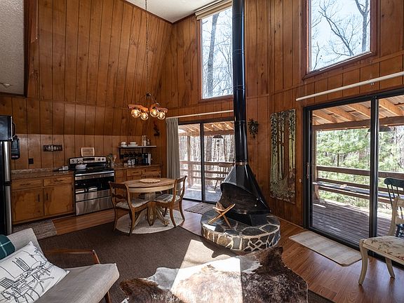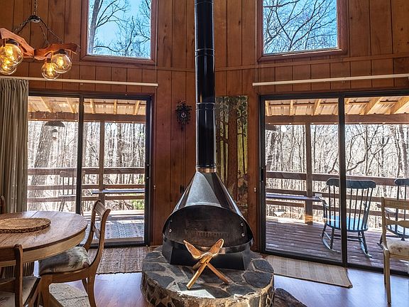 Escape to the tranquil embrace of nature in Murphy NC in this charming A-frame cabin tucked away in the bucolic Pied Piper community. Surrounded by towering trees on THREE lots totaling 1.4 +/- acres, this retreat offers serenity and seclusion. Step inside to discover your retro-feeling Great Room which has two sets of sliding glass doors beckoning you outside to the upper porch. The heart of the home is the two-story Great Room and kitchen combo, where a wood-burning fireplace invites warmth and ambiance on chilly evenings. Down the hall, a well-appointed bedroom and bathroom, providing comfortable accommodations for guests or family members. Ascend the ladder to the inviting loft, offering additional space or a peaceful area for relaxation and reflection. The lower level hosts the Master Suite, ensuring your privacy and convenience. A laundry area adds practicality to the lower level, completing the functionality of this delightful retreat. A metal roof crowns the cabin, while an attached carport provides convenience in inclement weather. Enjoy the seasonal view of the mountains, enhancing the allure of the setting. Outside, a gravel driveway provides easy access to the cabin, while the surrounding natural landscape invites exploration and outdoor recreation. Come see it today and make it your mountain home!