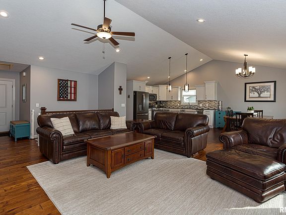 Welcome to this move-in ready home in Park View! This home is located in Dexter Acres, 7th addition and was completed in 2019. This house is better than new with all the extras already completed. A finished basement, insulated garage doors and heated garage, 10x12 shed, custom blinds throughout, sump pump with backup battery, water softener system, large fenced in yard, and custom landscaping. The main floor has cathedral ceilings, an open kitchen/dining/living room floor plan with engineered hardwood flooring, laundry room, mudroom, 3 bedrooms and 2 bathrooms. The basement has an office, oversized rec room, 3rd bathroom, large 4th bedroom, exercise room and a large storage area with built-in shelving. Located less than a mile from Scott County Park.