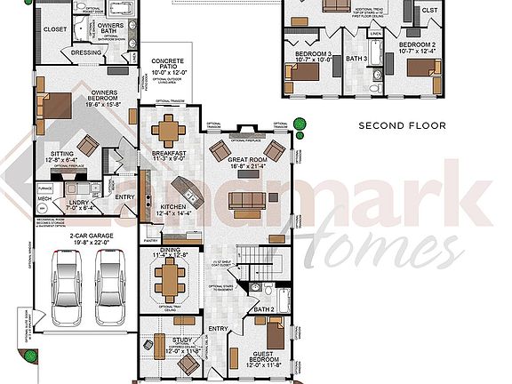 A large front porch adorns this 3,000+ sq foot home with 4 bedrooms, 3 baths, a recreation room, and a 2-car garage.. Large first floor owner's suite includes a private bathroom, sitting area with optional fireplace, spacious closet, and dressing area. The great room is open to the kitchen and breakfast area, which also provides access to the back patio. The second floor offers a large recreation area and optional bonus room. (Pricing may reflect limited time savings/incentives. See Community Sales Manager for details.)