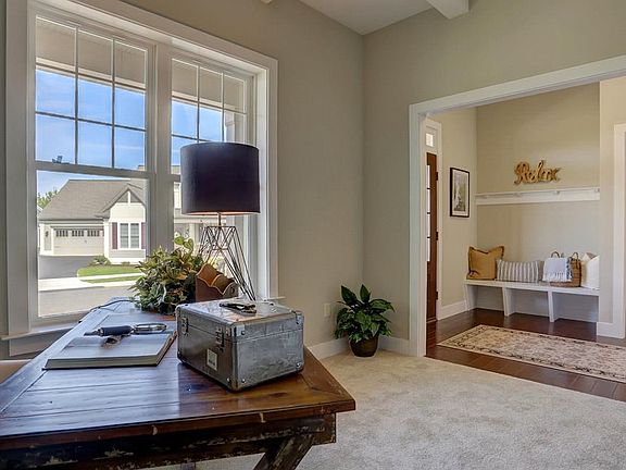 Enjoy one-story living in this 2 bedroom, 2 bathroom, Arts & Crafts style home with welcoming front porch.. The 1900+ sq. Foot home features a rear 2-car garage with mudroom entry, a side patio for outdoor living, and a study with optional coffered ceiling. The spacious kitchen is open to both the dining area and the living room with optional fireplace. The secluded owner's suite includes private bath with double vanity and a spacious closet. (Pricing may reflect limited-time savings/incentives. See community sales manager for details.)