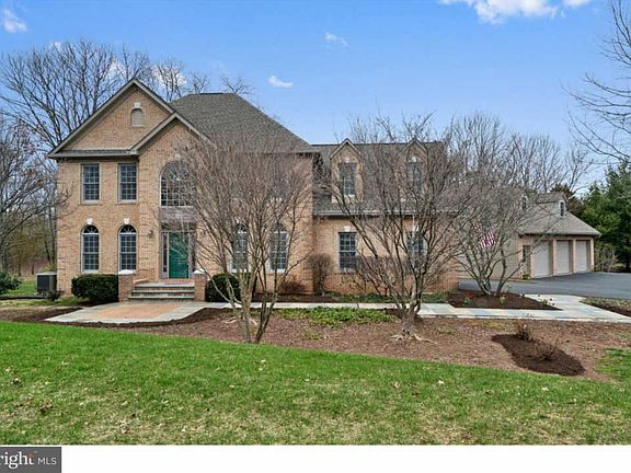 Welcome home to this exquisite custom?built, brick front colonial in the award-winning Souderton school district situated on 2 acres. This home offers eye-catching curb appeal, with a convenient circular drive, expansive front yard, mature landscaping, along with numerous amenities for the most discerning buyer in search of upscale, peaceful living. From the moment you walk up the stunning hardscape walkway, you'll notice the meticulously maintained exterior. The pride of ownership continues as you enter the two-story foyer with its custom-built hardwood front and back T staircase. Tastefully decorated, impeccably maintained, gleaming hardwood floors throughout, a variety of additional circular and transom windows make this home bright and inviting. Spectacular eat-in kitchen with 42" Yorktown cabinets, granite countertops, tile backsplash, oversized breakfast bar which offers additional seating, perfect for entertaining. Upstairs you will find a luxurious master suite w/tray ceiling, hardwood floors, adjacent sitting room/office area, walk-in closet, ensuite bath with his and her vanity, skylight, stall shower, and radiant heat flooring. You will be amazed at the three generously sized additional bedrooms and hall bath with radiant heat flooring. The fully finished walk-out/walk-up egress basement offers a variety of options, a playroom, TV area, exercise room, a home office, along with a half bath for added convenience. This home is great for entertaining and offers a relaxed space for a comfortable lifestyle. The expansive backyard has a natural park-like setting which also, includes an area with a 40 x 20 in-ground pool/spa and pool house/shed, and a maintenance-free fence. A large 3 car detached garage w/ loft area is ideal for the car enthusiast or home-based business. In addition to the irresistible backyard retreat take note of these amazing features/additions: Newer roof Nov 2015, Newer HVAC 2016, Newer pool cover, emergency generator transfer switch, newer hardwood floors, central vac, radiant heating, additional 3 car detached garage w/loft, basement powder room, a large premium lot. Fantastic location...this home is not to be missed!