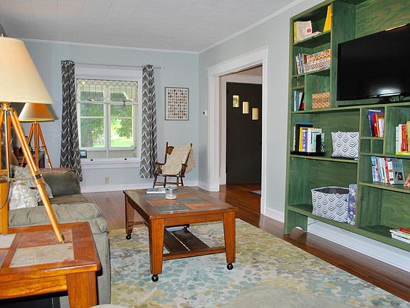 Beautifully & completely updated craftsman style home nestled on quiet street. Sizable front porch is a perfect place to unwind. Main floor is all hardwood; half beautifully maintained & half gleaming, brand new wood floors that match each other beautifully. Living room has multiple windows providing an abundance of natural light, Lead-glass pane on front windows of living & dining provide unique character. Kitchen features maple cabinets with 2-custom glass doors that compliment the other lead-glass windows. Back hallway leads to large 4th bedroom with beautiful French doors & brand new wood floor; currently being used as a playroom, but would make a spacious office or family room too. Upstairs offers large bathroom & 3 comfortable bedrooms; 2 of 3 bedrooms w/hardwood floors (continued)