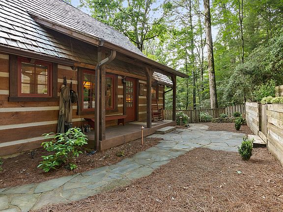 Welcome to your Elegant fly fishing retreat! This home is nestled in a picturesque location, w/ breathtaking views of the Cartecay river. (Loud rushing water you can listen to from the porch) The exterior features a combination of chink log, tin + cedar shake roof, and wood accents that perfectly blend with the surrounding private landscape which is across the river from wildlife management. There is an additional dining space & sitting area bathed in natural light thanks to large windows overlooking the panoramic view of the river. The interior is tastefully designed with a combination of rustic and modern elements, creating a cozy yet luxurious atmosphere with an upgraded kitchen, tons of wood accents, master on the main, well designed bathrooms, & a stone crafted fireplace which adds warmth and grandeur. Features include an open floorplan, new hvac, appliance, roof and plumbing. Upstairs enjoy an additional bedroom and bathroom with rustic ceilings and design. On the lower level, you will find an additional room perfect for a game room. The property includes a deck large enough to entertain many, a garden terrace, a walking trail, fire-pit & a gorgeous private location providing an ideal spot for enjoying the sights and sounds of the river(very gentle yard to the river). This sought after neighborhood features two gated entrances, a fishing pond, walking trails, paved roads, underground utilities, & is considered a wildlife sanctuary.