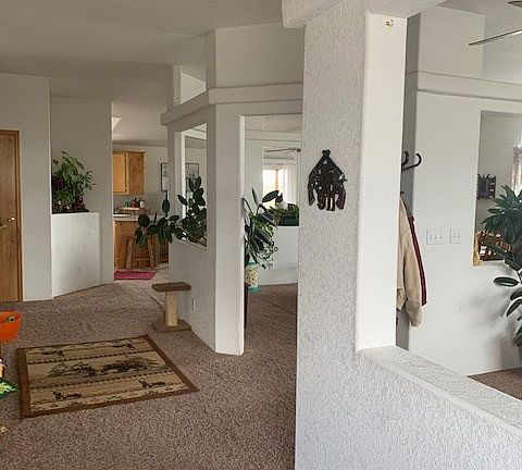Well maintained triple wide4 bed/2 full bath home on permanent foundation. Enjoy the views of the Big Horn Basin off of the large covered deck w weather shutters. Guest bath has newly installed Safe Step walk in jetted tub. Newer windows and exterior paint 2017-18. Est trees, U/G sprinklrs. NOT IN A SUBDIVISION!Closing date will depend on sellers ability to find suitable home to purchase in Powell