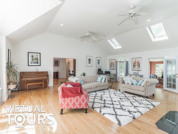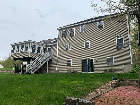 Beautiful *5 bd/ 2.5 ba two-story home with finished basement in private, Leominster location. Backed up to conservation land, this house is a nature-lover’s dream with lots of land. Entering the charming foyer with hardwood floors, you are greeted to high ceilings and a hallway that leads you to an open-concept kitchen and dining area. Equipped with gorgeous granite countertops, stainless steel appliances and a breakfast bar, the U-shaped kitchen flows into a chandelier-lit dining area; an ideal spot to host guests. The space connects to a massive great room with vaulted ceilings, complete with skylights and an attached three-season sunroom — the space is inviting and relaxing. Upstairs are three bedrooms; the primary features a pristine ensuite bathroom with matching vessel sinks, tiled shower/bath combo, and spacious walk-in closet with built-ins. The fourth bedroom is on the ground floor. Downstairs, you are treated to a comfy, finished basement that offers plenty of storage space and room for leisure. Use the sliding doors to step into the massive backyard, with plenty of room garden or exercise, and then rest on the paved patio adjacent to the privacy fence. Other features: Central A/C, forced air heating, two-car garage, laundry room, plenty of storage space. Nearby: Leominster State Forest, The Mall at Whitney Field, Leominster shopping and dining, Fitchburg State University, easy access to I-190, an hour commute to Metro Boston. *5 bedroom assessed as a 4. Buyer to verify all information.