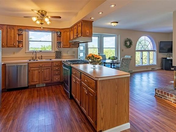 Beautiful all brick home features a desirable floor plan, metal roof, spacious rooms, 2 sided gas fireplace b/w kitchen & family room. 1st floor laundry, tons of kitchen cabinets, finished basement. Vaulted ceilings in Updated Primary Bedroom & bath & updated main bath with vaulted ceiling. New carpet on stairs to upper floor, landing, primary bedroom & fresh paint, new carpet in another bedroom. Armstrong Lux flooring on the main level. Spacious dining room, New decking on the two level deck overlooking the fantastic 18X36 in ground heated pool with vinyl liner. New door on the oversized 2 car garage with built in work bench & storage area for your pool supplies. Walk in closets attic fan & 7 ceiling fans. Pull down stairs to floored attic. Fantastic location near Route 19 & I 79in Canon McMillan school district.