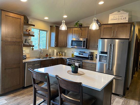 Located near medical services and shopping, in a quiet cul de sac with a forested draw in your back yard, this home is ideal for families or retirees. Built in 2018, this ranch style home features modern kitchen with quartz island and gas oven, main floor master suite, main floor laundry, three stall garage, and finished walk out basement. Large backyard is your canvas for endless options.
