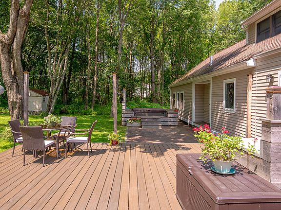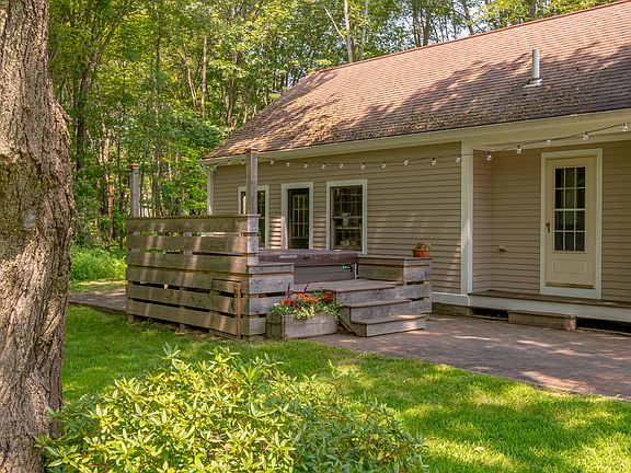 With an idyllic New England setting, 345 Mitchell Road is both a convenient location and the perfect place to call home. If you like hiking/mountain bike trails literally out your back door and beaches just a mile away, you're going to love this enchanted oasis nestled in a protected Cape Elizabeth forest abutting acres of conservation land. This sunny home has been updated to include all of the modern amenities for today's living. The main level boasts hardwood floors throughout, its large mudroom including laundry and a half bath. The kitchen has granite counters, stainless appliances and a convenient breakfast bar. A spacious casual eating area and den with built-ins are off the kitchen. In addition, the first level offers a charming butler's pantry with sink, separate dining room, and living room with wood burning fireplace. The second floor has a front-to-back primary suite, its bathroom with double sinks and a jetted tub. Two other bedrooms and a full bathroom round out the upper level. This resilient, sustainable home takes care of its people and the environment through excellent insulation, rooftop solar energy, solar hot water, battery storage, a ductless mini split heat pump and two electric vehicle charging stations. For backup heat and hot water, the home features an efficient condensing propane boiler as well as a comfy wood stove that can easily heat the first and second floors. The well-landscaped outdoor spaces are perfect for gatherings, with a large composite deck and grill area complete with stone counter. The brick patio is private with a fabulous 7-person hot tub, the ideal place to enjoy a snowy, starry night or unwind after a long day. An attached two-car garage and finished lower level round out this wonderful property. This Cape Elizabeth gem is just minutes to downtown Portland and its award-winning restaurants & arts district, 20 minutes to the International Jetport, and less than two hours to Boston.