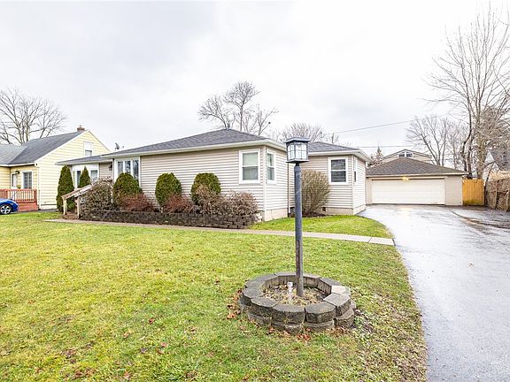 OPEN HOUSE SCHEDULE 1pm-2:30pm. Welcome Home! This Greece ranch home boasting 1224 sq foot of charm and convenience is ready for to move in. Upon entering this 3 bedroom and 1 bathroom home you are greeted with a foyer and nice sized living room, recessed lighting, glass sliding door leading to a back patio. The eat-in kitchen has lots of counter top space with all kitchen appliances staying. The basement makes a super storage area or a future second living space. Hot water tank only 2 years old, furnace and AC in solid working order. Also offering a 2 car detached garage on a double wide driveway. This home is conveniently located near local restaurants, highway, grocery stores, schools and more!!Delayed negotiations set to be 1/16/2024 by 12pm.