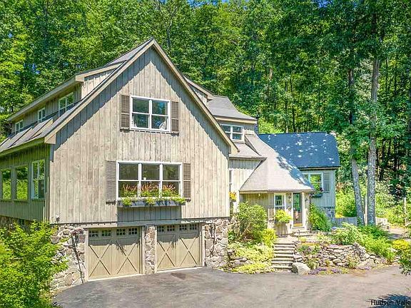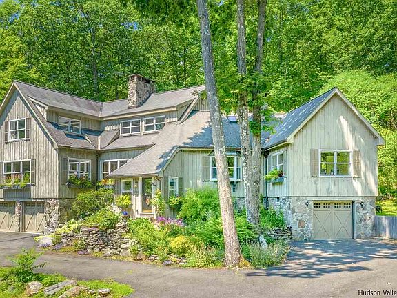 Mountain Road Marvel. Form meets function on the way to fabulous in this 4000 sq ft turnkey contemporary set in serene wooded seclusion. High end upgrades abound, beginning with the gourmet country kitchen. Matching stainless steel Bosch range/oven, double-door refrigerator, microwave/hood and dishwasher are intelligently placed in ample honed quartz countertop space. Pounded copper farmhouse sink, walnut island breakfast bar and Wood-Mode custom cabinets complete the heart of your new home. Choose between dining areas open to the kitchen on either side. The inviting living room showcases post and beam construction and radiates warmth from the huge brick wood-burning fireplace. Do you like light? This house has windows instead of exterior walls in every room, none more dramatically so than the 1000+ sq ft great room for family activities and entertaining. Upstairs the en suite master bedroom features the second of two wood-burning stoves and a deep soaking tub. How cozy is that?! Two more well-proportioned bedrooms on this level share the home's third full bath. As if 4000 sq ft were not enough, enjoy bonus square footage down below. In the basement, discover a sound-proofed music room and a room made of cedar, which could be your next sauna waiting to happen. Choose between drive-in garages with interior access, one for one car, one for two--plus additional workshop space. We saved the best for last. Outside, 1250 square feet of Rennie Cantine-designed and built outdoor cedar deck climbs your mountain, landing on multiple levels for sunbathing, lounging and dining, complete with hot tub and outdoor shower. Above it all is a private wooden platform for inhalation and exaltation, with seasonal views of the Ashokan Reservoir. The location is the best of both worlds, an amazing sanctuary yet readily accessible to Kingston, Woodstock & Phoenicia and all the natural beauty, recreation, dining, arts and culture the Hudson Valley and Catskill Mountains has to offer. The Shokan entry point to our region's newest outdoor resource, the Ashokan Rail Trail, but a mile away. 345 Mountain Road has it all. It's marvelous!
