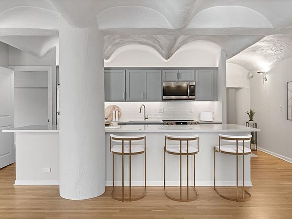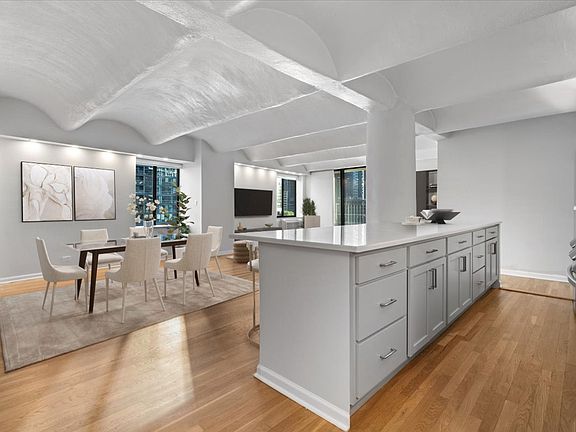 Stunning 2 Bed / 2 Bath SE Corner Unit with Best Views in the Building! Live on the river at historic Fulton House in this spacious 1,500 sq. ft. corner condo with barrel-vaulted ceilings, open floor plan, and tons of storage. Enjoy brand-new hardwood floors, a 2021 remodeled kitchen with stainless steel appliances, and a 2021 spa-like primary bath. Soak in skyline and river life from your private south-facing balcony, or relax on the building's riverside deck with BBQs and boat dock. Unbeatable location- near Fulton Market, River North, East Bank Club, Riverwalk, Union Station, and EL stops.
