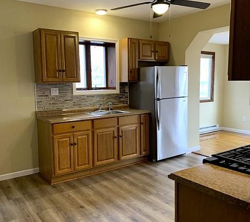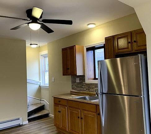 Large duplex-style with refinished hardwood floors. Remodeled kitchen with brand new stainless steel appliances. Large full bath and brand new half bath off the master bedroom. Formal dining room and living room. Direct access to large deck and steps to yard. Two bonus rooms - for office use or additional storage. Private entrance to the unit and direct access to shared basement with laundry hookups.