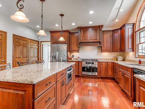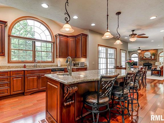 A rare find on 5 acres in Pleasant Plains school district just 15 minutes to the hospitals, this completely renovated 5 bedroom, 3 full bath home is beautifully situated on a wooded hilltop overlooking rolling countryside. Boasting 3 car attached garage, 3 car detached garage, & city water. Large family home w/5 BRs up, main floor study, formal LR & DR. Large screened porch. Extensive high end updates include: gorgeous new cherry custom kitchen w/granite tops & SS app., Brazilian cherry hardwood floors, all 3 baths completely renovated w/quartz counter tops, master bath w/free standing soaking tub & dual headed shower, scraped wood flooring in upstairs hall & MBR, Roof '15, HVAC '19, garage doors '18, carpet '19, patio '18.