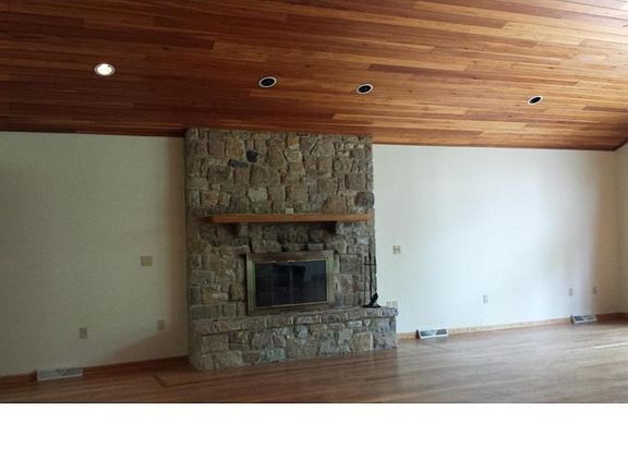 Private driveway takes you to this Gorgeous Contemporary Stone & Cedar home on 2.20 acres. Property features a large great room with stone fireplace, hardwood floors and cathedral ceiling; fabulous custom kitchen with center island, Sub Zero refrigerator, granite floor & counter-tops adjacent to eating area and deck. The 1st floor also offers a large main bedroom w/ cathedral ceiling, cedar closet and full bath with Jacuzzi tub; 3 additional bedrooms, laundry and hall bath: Stairway leads to large LL Family Room with 2 additional rooms (or bedrooms) and full bath (perfect for in-law quarters); Three car garage w/ heated work room; Other features include Geothermal heating/cooling, Pella windows, Trex deck w Sundance Hot Tub, Covered Brick patio, Security System w/ driveway sensor, Driveway lined with street lamps, circular drive in front of home, 6" fence in rear, dog run & garden area. Upgrades Galore - must see!
