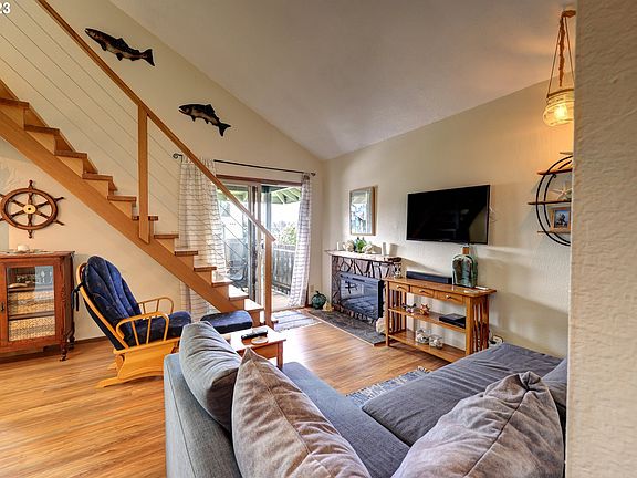Affordable full time or second home at the coast! Well maintained and tastefully updated condominium & complex with easy access to Warrenton mooring basin and docks. Amenities include; pool, tennis courts,& club house. 857 Sq. Ft. Master bedroom and bath on main floor & 2nd bedroom/loft & 2nd full bath. Cozy electric fireplace, covered balcony & select furnishings included. stair access to loft & new flooring throughout. 24' boat slip included.