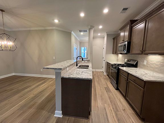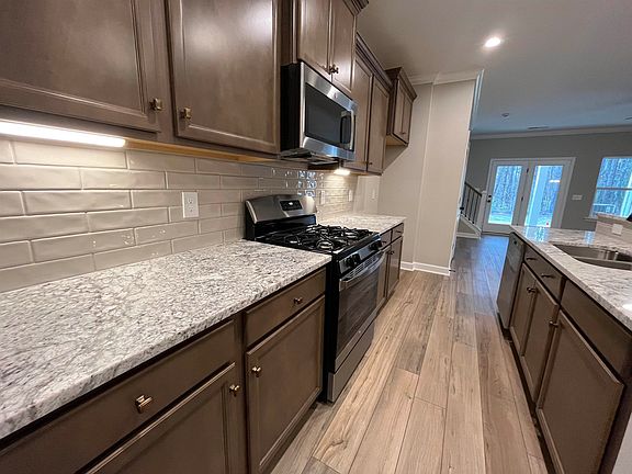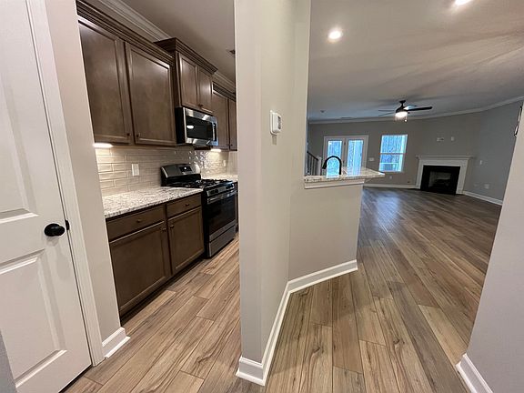 Luxury townhomes in incredible location, with shopping and dining right at your doorstop, just 5 minutes from Woodruff Rd. and 10 minutes to downtown! This beautiful home offers luxury, convenience, and functionality. Step inside your new home and you will be wowed with the hardwood stairs and luxury plank flooring on the whole first floor. Your kitchen boasts upgraded, locally made cabinetry, with gorgeous granite countertops, undercabinet lighting, a pantry, and gas oven! The kitchen overlooks the eating area and inviting family room, complete with a gas fireplace and thoughtful finishes such as ceiling fans, crown molding and upgraded light fixtures. The gorgeous garden doors beckon you outside, to your own covered back patio complete with storage shed. The fence panels already installed and GREEN SPACE BEHIND offer even more privacy. Continue up the gorgeous boxed oak stairs that turn and have two windows to let in the natural light. Your oversized master suite upstairs is grand, with crown molding and private access to your own balcony. Imagine peaceful mornings drinking coffee overlooking the neighborhood. The master suite is spa-like, with tile floors and an oversized tile shower, frameless glass doors, and a generous walk-in closet. Down the hall 2 secondary bedrooms with another full bath complete this home. Fall in love with the community as well, which has it all offering homes currently zoned for the only SC school in over 20 years to win the McConnell award (highest achievement award an academic facility can win), and some of the best amenities around. Enjoy the community pool, creek that feeds the 2 fishing ponds, and walking trails that connect the different amenities. Come live the life you want. Lawn care and exterior care is covered by the HOA. Opportunities like this don't come around often, come visit the model home today.