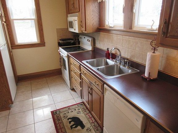 This cozy home features an updated kitchen with plenty of storage space. Hardwood floors in the dinning room. Gas fireplace in the living room with French doors leading out onto the side deck. The bathroom was just remodeled within a year ago. New windows throughout. The second bedroom has been partitioned off into two rooms. Could be a third bedroom. 2 stall detached garage and plenty of yard space. 0.72 acre.