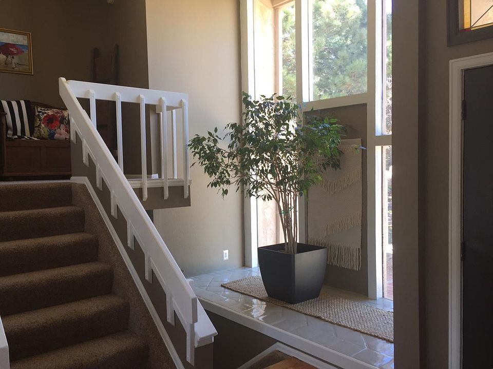 A beautiful 4 bedroom 3.5 bath split tri-level with a finished basement. A spectacular view of the Rocky Mountains that is located within a few miles of both FT Carson and Cheyenne MTN Air Station. The home comes with the possible use of a large jacuzzi. The home has 3 wood burning fire places and a jetted, oversized bath tub in the master bedroom. The kitchen has updated appliances, a wine refrigerator, and a breakfast nook. This property is located in school district 12, which is rated as one of the top two school districts in the county.