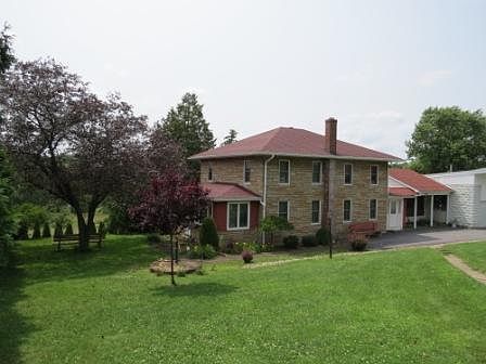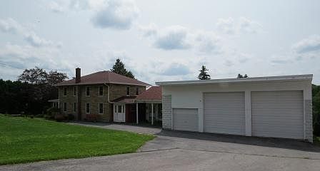 Large house and garage for a small price!! This stately, spacious stone exterior two story with oversized three vehicle garage can house all you need! It has oak trim, hot water heat, 4 bedrooms upstairs and a bath on each floor. The breezeway attaches the house and the one room office and the garage. The back deck is also accessed from the central breezeway. There is also a half bath in the garage and a half bath and shower in the house basement. THIS PROPERTY IS BEING SOLD AS IS.