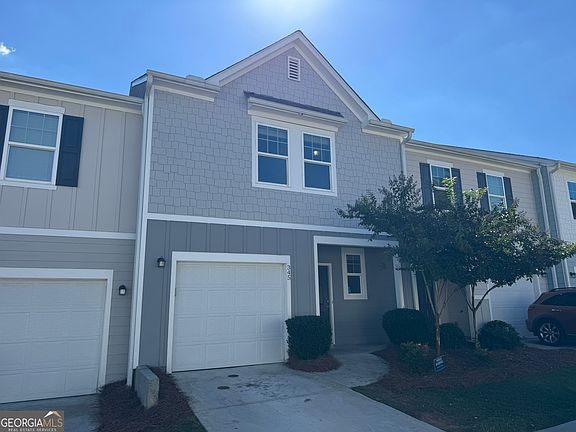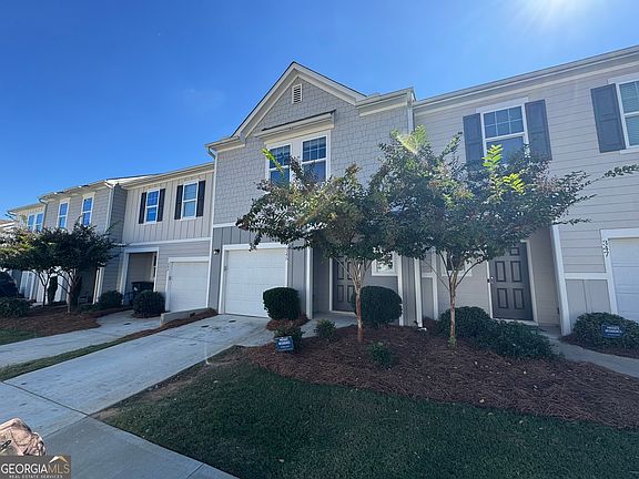 This 3 bedroom 2.5 bathroom townhome with LVP flooring on the main and soft carpeted bedrooms upstairs. Large walk in closet in the master. The kitchen includes white cabinets and granite countertops. The kitchen connects with a spacious living room. The bathrooms feature a tub/shower combo and matching cabinetry. A single-car garage and a front yard complete the exterior layout. HOA will take care of the yard and trash. Located in a well-connected area, the home is about 5 minutes from I-75, making it ideal for commuters. Downtown Atlanta is approximately 45 minutes. Major nearby stores includes Walmart, Lowes, and Piedmont hospital within a short drive, offering convenient grocery and shopping options.