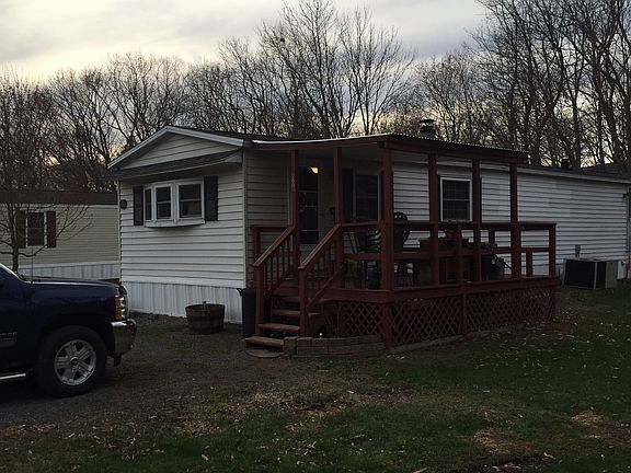 2 Bedroom, 1 bathroom mobile home on a corner lot in Pepper Hills. Situated between Danville and Bloomsburg, you are just minutes from either town. Hardwood floors throughout except for bedrooms which are carpet. New Central Air and Windows in 2011, New skirting and shutters in 2013, New roof and porch roofs in 2014. The home has a deck off of the kitchen and a patio off of the living room - both are covered. There are 2 storage sheds included. Home also comes with: refrigerator, stove, microwave, washer, and dryer. The mountain stone fireplace in the living room is a wood burning fireplace. Lot Rent is $290 per month and includes: water, sewer, and garbage.