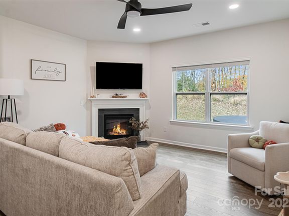 Enjoy year-round mountain views and peaceful living just minutes from shops, dining, and outdoor recreation in the desirable Hickory Ridge community. This single-level 4-bedroom, 2-bath CALI floor plan offers 1,764 sq. ft. of open, modern living with 9-ft ceilings, vaulted living space, Mohawk flooring, and a gas fireplace.