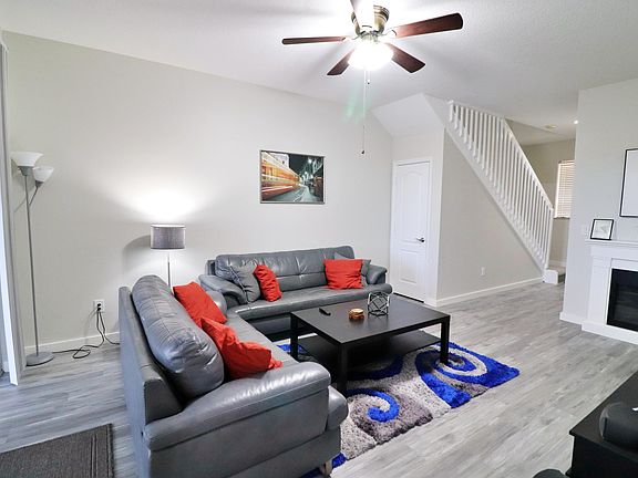 Renovated home with waterproof vinyl flooring on first floor and new carpet on second floor, all new baseboards. Stainless steel appliances and granite counter tops. Walk-in closets in all bedrooms with own renovated bathrooms. Large extended covered screened patio with backyard facing preserve for extra privacy. Bring the pets. Two car driveway with two guest parking spots across from home.Private gated community pool with key access. Investors, no wait to lease. 6 to 12 month leases only. Gated community near Costco, Marshalls, Starbucks, Outback Steakhouse, and World Of Beer.