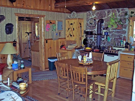 This is the chance to own a nice mountain cabin with a unique walk out basement on 5.97 acres in a scenic and peaceful setting. Bordering National Forest, the area offers fishing, hunting, snowmobiling and more. Improvements include a guest cabin with covered porch, large log shop with storage areas, covered RV storage and a shed for horses. Can be accessed and lived in year around.