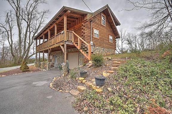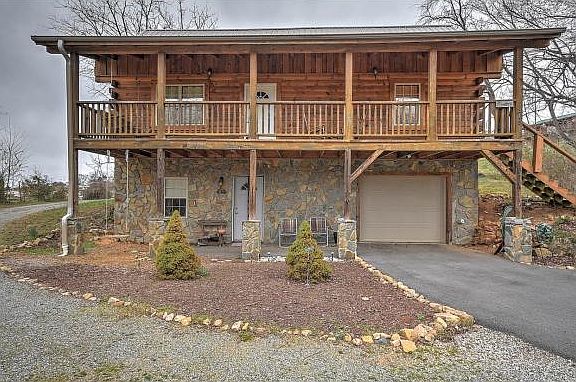 Searching for a mountain home in a pristine setting? Here you will find a gorgeous yet cozy cabin with tons of privacy not to mention the serene creek that runs through the property. This 3 bedroom, 2 ý bathroom cabin will pull at your heartstrings the moment you step foot onto the storybook-like property. At first glance, you will notice the beautiful covered front porch just awaiting your lazy days ahead. It is perfect for lounging in a rocking chair and soaking up all the country views while listening to the bubbling creek. A step through the front door reveals an open concept living room, dining room and kitchen combo. The extra high ceilings add to the concept of an open feel and provide unlimited decorating options for this area. The main level boast a large and spacious bedroom and a full size bathroom. This bedroom is currently being used as a master bathroom. Upstairs you will find two additional nicely sized bedrooms and another full size bathroom. The larger of these two rooms could also make an exceptional master bedroom. Step back down to the main level and through the kitchen to check out the beautifully screened in back porch. Enjoy Mountain views while sipping your morning coffee in the comfort and privacy of the screened in porch. Downstairs takes you to a large bonus room that can be used for a family room or a man cave. This area is so spacious that the possibilities are limitless. The 1 car garage and laundry room are also located on this level. Buyer to verify.