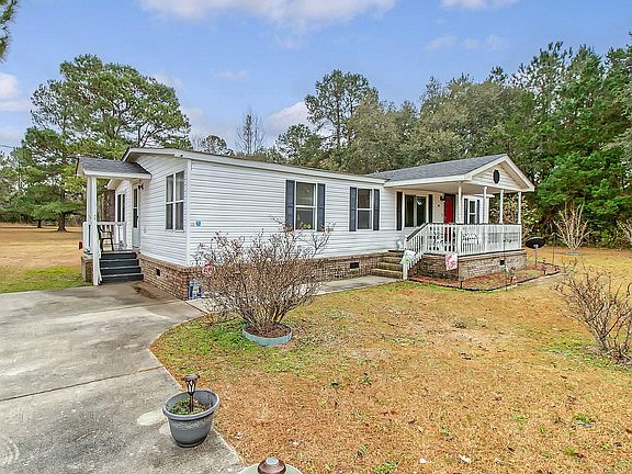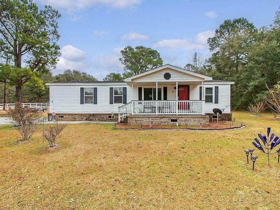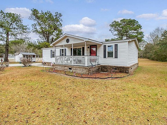 This charming home is situated on almost 2 acres of land. Upon arrival, you are greeted with a lovely picket fence and a long driveway that leads to the carport. The roof of the home was replaced in 2019. The front porch invites you in with open arms. This is the perfect spot for some rocking chairs to relax in and take in the scenery. When you walk through the front door, you are greeted with a spacious living room, perfect for entertaining family and friends in. The eat in kitchen features an abundance of cabinet space, great for any storage needs! The Master bedroom is complete with a large walk-in closet and an en-suite bathroom featuring double sinks, a glass enclosed walk-in shower and a separate garden tub. Take a step outside and enjoy the outdoors.This property provides ample space for kids to run around with family pets, mature trees and other beautiful greenery. This home is conveniently located near local shopping, dining and entertainment options, as well as minutes from Lake Marion, Rocks Pond campground & Marina. Don't wait! Come see this property today! **The mobile home has been de-titled.**