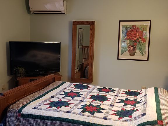 Amazing open floor plan featuring two master bedrooms, one on the first floor with a majestic master bath! Another master suite with it's own bathroom on second floor with a balcony that overlooks the private backyard. Newly refinished hardwood floors and paint give the main living area a crisp clean feel. Vaulted ceilings in the living/dinning area. Granite tile countertops, stainless steel appliances in the captivating kitchen. This home is move in ready for the new lucky buyers. Down in the partially finished basement is another wood stove, office or a fifth bedroom with an egress window. There is a work shop downstairs for the handyman as well as a wet bar. Listen to the chirping of the birds and in spring the gentle sound of the brook from your deck! Heated gutters on back of home, The floodlights over the gable glass in the winter gives a dazzling view of the soft white snow! Right across the street from an apple orchard, with apple trees in your backyard. Go see today