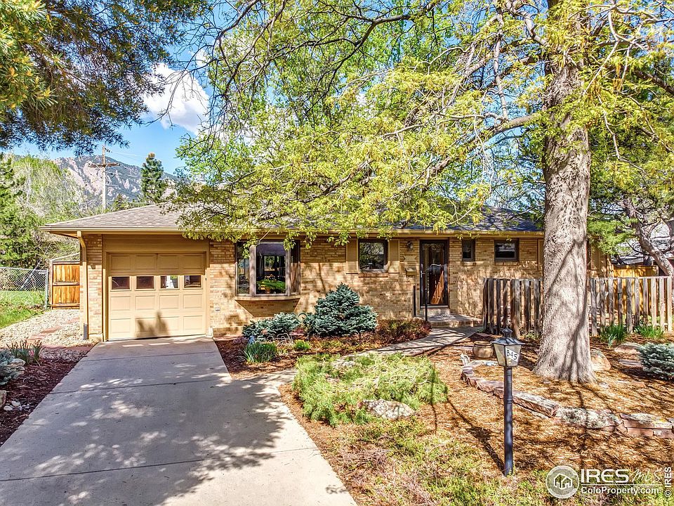 Under the shade of a huge pin oak tree you'll find one of the true gems in Martin Acres! This expanded, one level ranch has been nicely updated and lovingly maintained by the same owner for over 50 years. Located on an oversized, beautifully landscaped lot on a quiet neighborhood street only one door away from Martin Park and the Bear Creek Pedestrian Trail. Large open great room features gorgeous hardwood floors, a gas fireplace with brick hearth and built-in entertainment center, a nicely remodeled and well equipped kitchen, and sliding doors that open to a wonderful sunroom you can enjoy year around taking in the views of the Flatirons, Green Mountain, and the beautiful backyard. Spacious primary suite with private 3/4 and walk-in closet opens to the private and parklike backyard with mature trees, curated perennials, and a groomed lawn. Attached to the garage is a 100 sqft workshop, exercise room, or storage area. From your front door you can take the pedestrian trail and be at the Table Mesa Center and all it's great restaurants, shops, and grocery stores in literally two minutes. Shop at Whole Foods and Soopers, tip back a couple at the Southern Sun Brew Pub, dine at Southside Walnut Cafe, Under the Sun, and Murphy's South, or visit Pharmaca, Pettyjohn's Liquor, Table Mesa Hardware, and a host of other beloved Boulder stores.