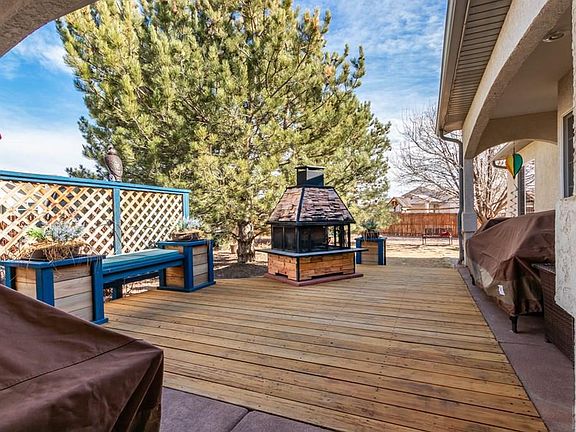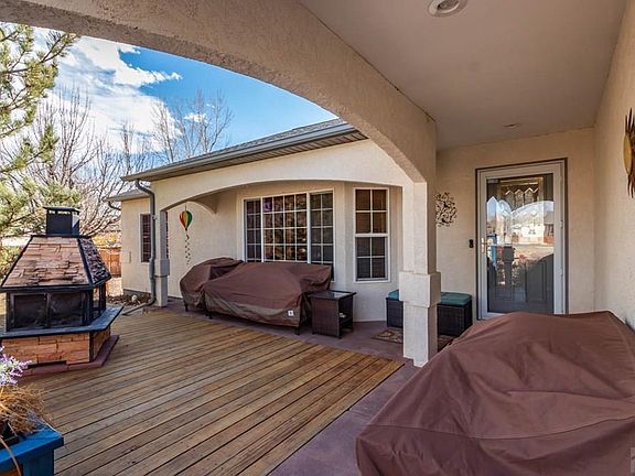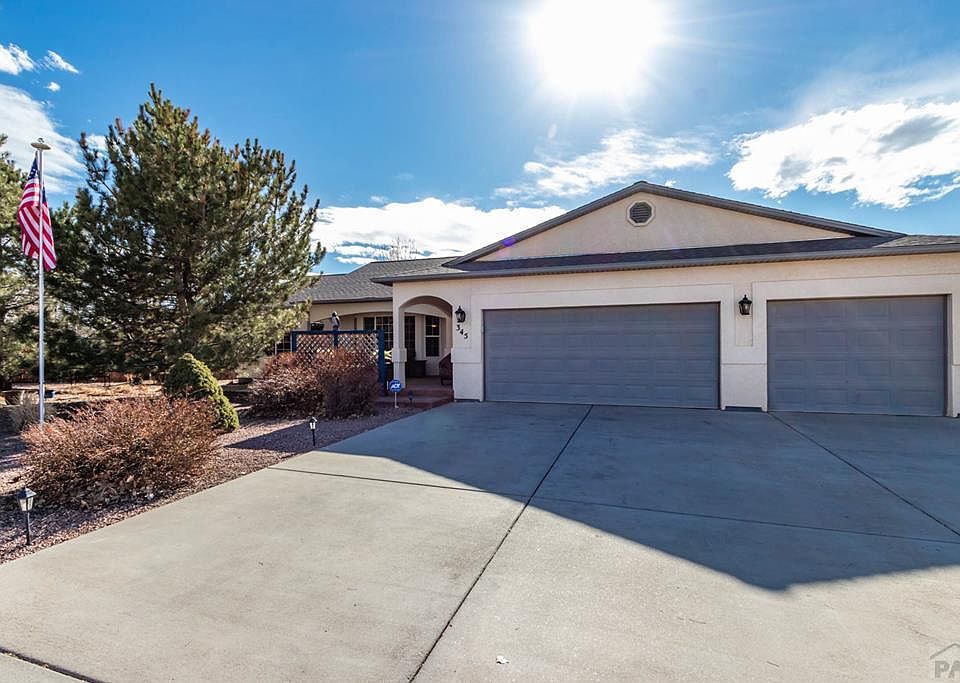 Enjoy the lovely Niche upon entry then walk into this beautiful Ranch style home located on a cul-de-sac in the Pueblo West Golf course area. Plenty of room for the boat and RV . Gorgeous handmade custom fence . Fully landscaped yard with mature trees & shrubs all on a sprinkler/drip system. Enjoy the outdoor deck for all your entertaining with a custom brick stone fireplace. Open floor plan with vaulted ceilings, a split bedroom design, 2 bedrooms on one side, Master bedroom on the other side with walk-in closet & access to the sunroom. Relax and enjoy in the spacious sunroom all year round which even has a gas heater. Large Bay window with window seat and a custom fitted cushion in the living room including extra storage underneath. Recently installed beautiful plantation shutters throughout the home. Solar Attic Fans. Solo Tube Skylights. Open kitchen floor plan with tile through out, lots of counter space & storage, nice size breakfast nook. Pass through the spacious laundry room on the way to the oversized 3 car garage which is completely insulated and has tons of custom shelving and cabinets. Enjoy the spacious outdoor playground area. Sellers have put a lot of care & time into this immaculate home. Don't miss out on this opportunity, move-in-ready. Washer and Dryer are Negotiable.