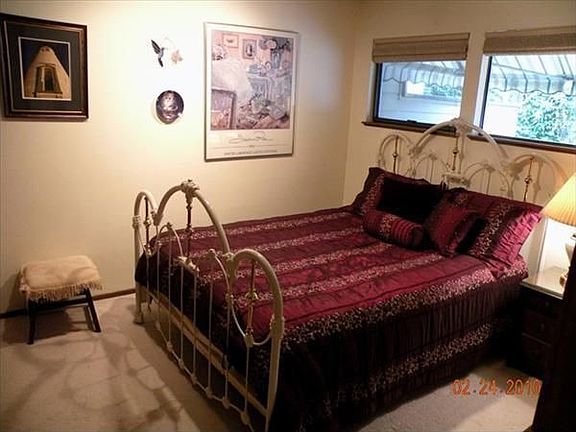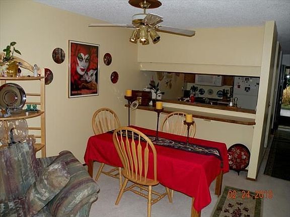An amazing Rock Fireplace highlights this contemporary, yet cozy & desirable one level 1064 sq. ft. condominium. 2 Bedrooms, each with their own access to private patio areas, one which is covered. Master Suite has a large walk-in closet and dressing area. Two full baths. Garage accesses into unit. Air Conditioning , Washer & Dryer in unit and all Appliances stay! Welcome Home!