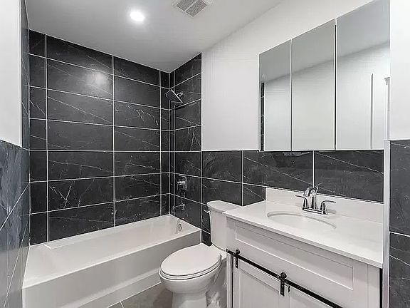 Welcome to an incredible detached 2 Family Brick house in the heart of East New York, Brooklyn located on a quiet treelined block. The building is newly renovated and legally extended (20/60) . This modern designed home has a lovely and very spacious layout throughout. This beautiful property features a 3 Bedrooms + 2 Full newly designed bathrooms with high end finishes. This apartment is over a 3 Bedroom / 2 Full bathroom duplex apartment. Each unit features a spacious master suite with a designed master bathroom and 2 walk-in closets as well as laundry room with washer/ dryer hook up and central AC. The open tiled kitchen has custom white cabinetry with a lot of storage space, quartz countertops, stainless steel appliances leading into a spacious and bright living area. To top it all, the house has a driveway and you would love the big backyard that's perfect for entertaining friends and family. Fast commute to the city only 2 Blocks from the A , C line. Near tons of essentials.