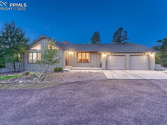 Don't miss this great opportunity to live in the Woodmor area of Monument bordered by the Pike National Forest to the west and offers access to hiking/biking trails and several lakes. Monument is a perfect location for commuters going to Colorado Springs and Denver. A unique combination of mountain feel and easy access to all amenities, schools and major highways. Enjoy ranch style living surrounded by Ponderosa pines and breathtaking views of Pikes Peak. Nestled off a private cup-de-sac, this property offers endless possibilities to create your own oasis. Enjoy morning coffee on the back deck as the sun rises or relax at days end as the sun sets behind the western mountain range. This incredible home and property is just waiting for you to bring your creative vision and make this home your own. As you enter, you will be immediately drawn to the expansive great room which showcases a vaulted ceiling with tongue in groove wood work. Large windows allow an abundance of light to stream throughout bringing the beauty of the outdoors and views inside! A large deck is located just off the great room and is a perfect place for entertaining or just enjoying the outdoors and views. The private primary suite is very large with 3/4 bath attached and walk-in closet. Main floor secondary bedrooms have their own wing with full bath. Either bedroom flexes to study or studio space. Casual dining is possible in the kitchen nook area with eat-in bar. Combination mudroom and laundry are accessible to oversized two car garage with workshop. Storage is abundant. Lots of possibilities! Lower level provides additional entertaining space along with another secondary bedroom including 3/4 bath. The desirable location and sheer beauty of this property is a rare opportunity with lots of potential