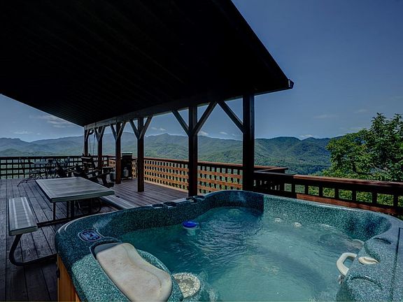 Outrageous long range views from this rental cabin. Layers and layers of mountains of the Smoky Mountain National Park and Lake Fontana! This 3 Bedroom 3 bath cabin has 2 Bonus Rooms that can be used for additional sleeping space or many other options. Currently on a very successful rental program. Majestic View Lodge is conveniently located in the Nantahala River Gorge, which is home to world class whitewater rafting, kayaking, and ziplining. Bryson City is located just a fifteen minute drive away where you will find the Great Smoky Mountain Railroad, Deep Creek Community, plenty of delicious restaurants, and local boutique shops. With the Great Smoky Mountain National Park close by, you are in the perfect spot for leaf looking, hiking, biking, fishing, swimming, and tubing. Sleeps up to 10 with three king sized beds and four twins. Hot tub, wood burning fireplace, ample covered decking, fire pit, gas grill, and outdoor dining. Indoors there is a fully stocked kitchen, iron stove fireplace, flat screen television with satellite service, DVD player, ping pong table. Only Two Cabins at the end of this Private Road. Location, Location.